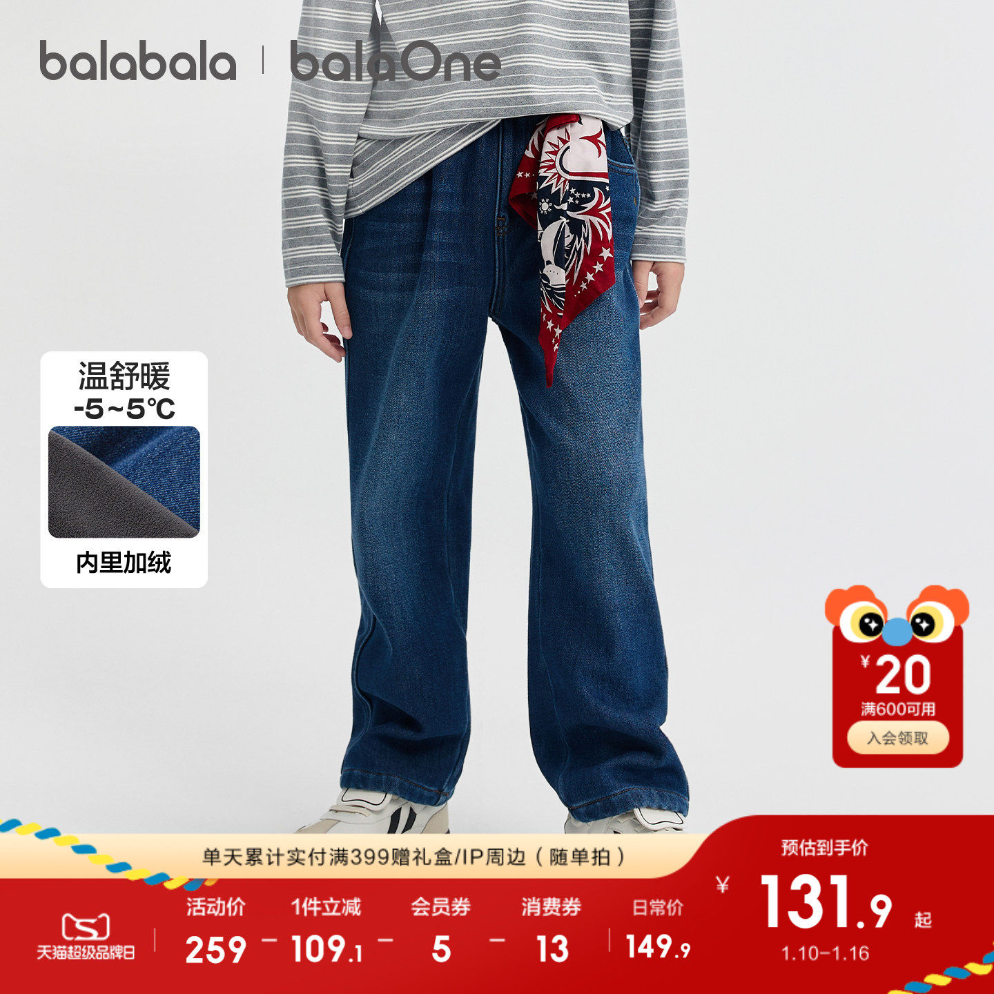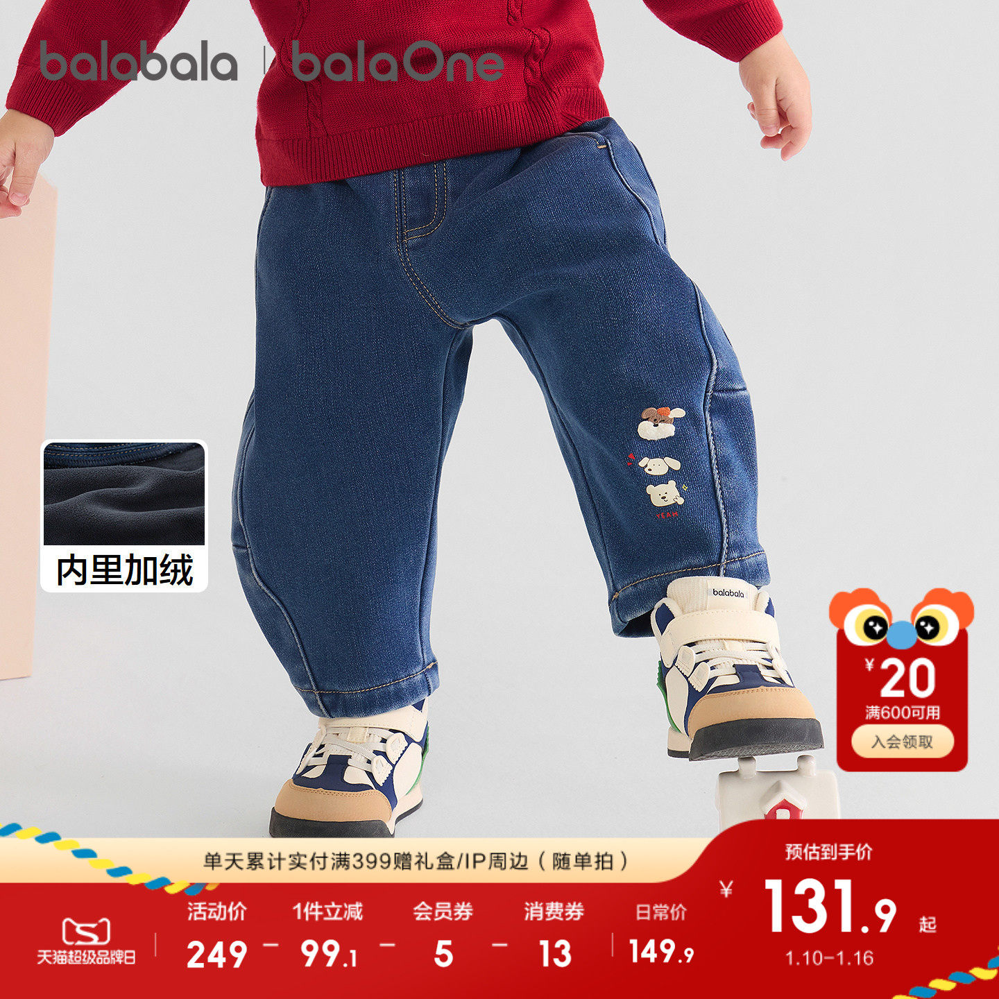 【巴拉巴拉新年专场】巴拉巴拉裤子儿童牛仔裤新款加绒直筒裤复古