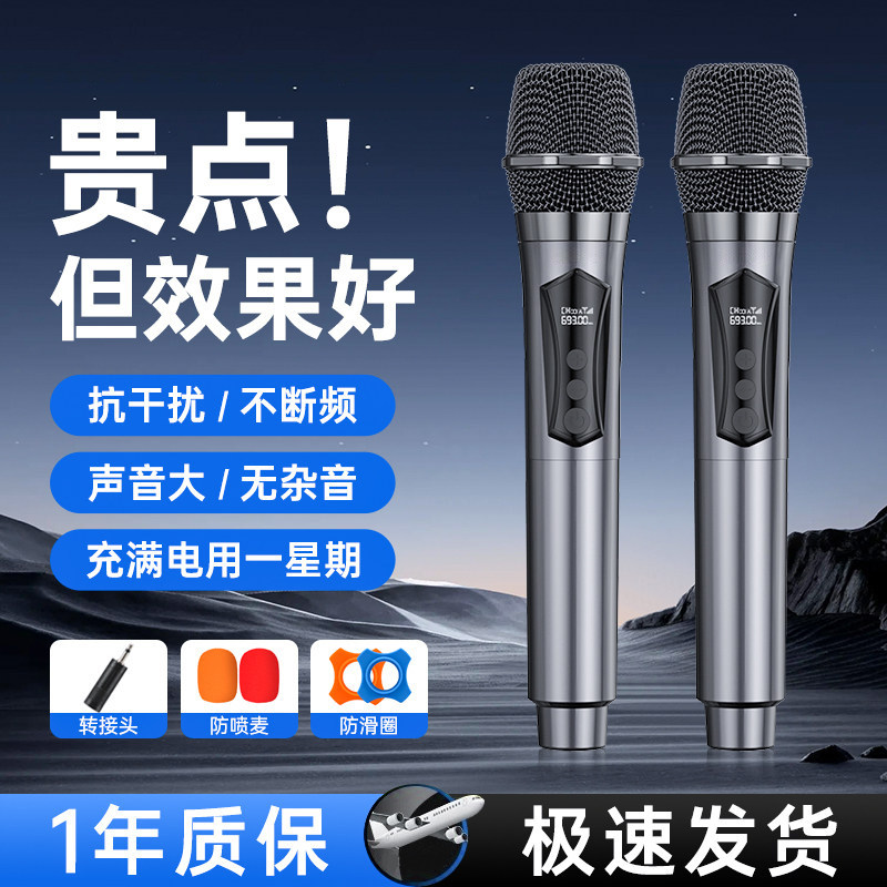万能无线话筒一拖二家用ktv专用k歌充电麦克风带混响唱歌音响通用