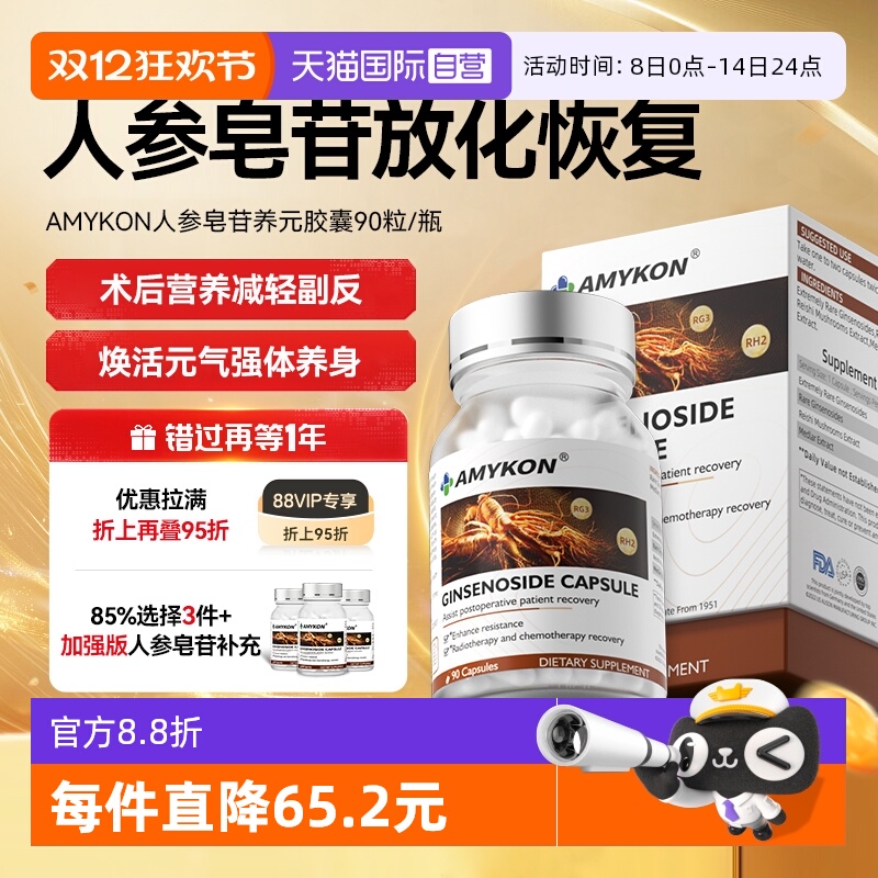 【自营】AMYKON人参皂苷rh2高纯极稀有rg3放化术后免疫力恢复胶囊