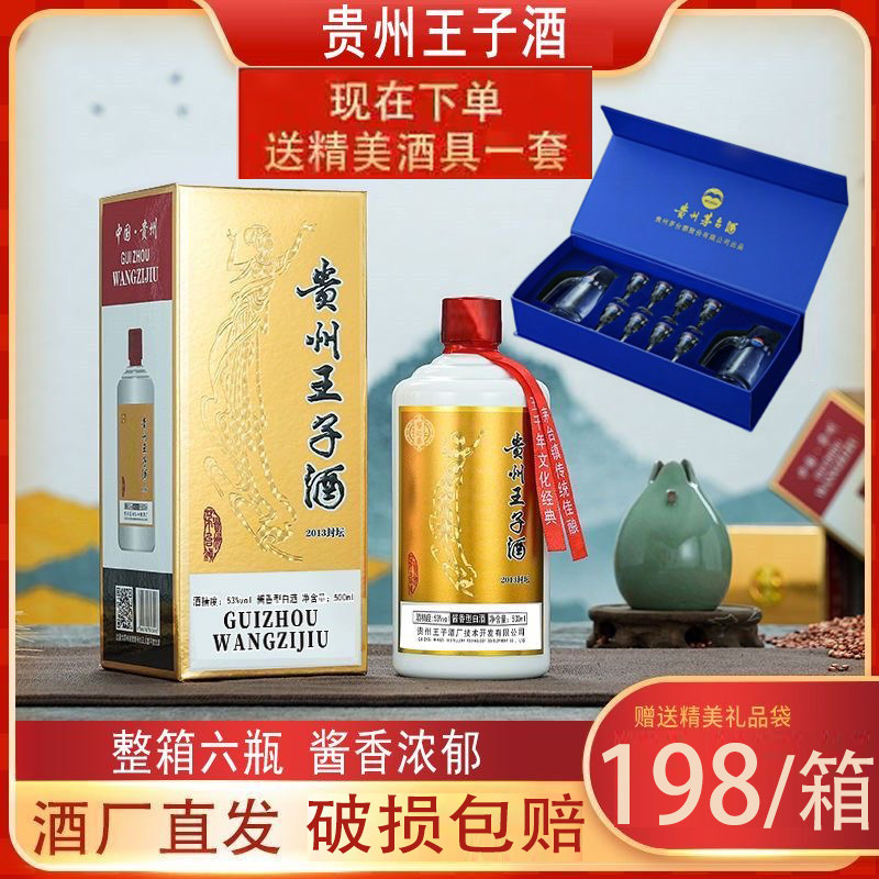 贵州王子酒整箱500ml*6瓶53度酱香型酒水白酒礼盒装送礼纯粮食酒