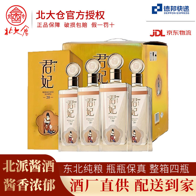 北大仓白酒 君妃贰拾53度酱香型酒白酒整箱东北纯粮食酒500ml*4瓶