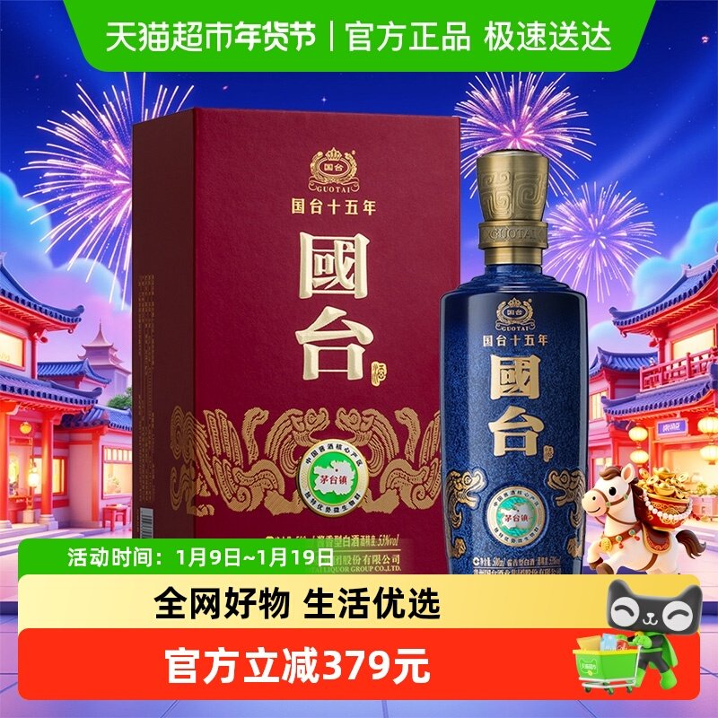 贵州国台酒53度国台15年500mL*1瓶 单瓶礼盒收藏酒高端酱香型酒水