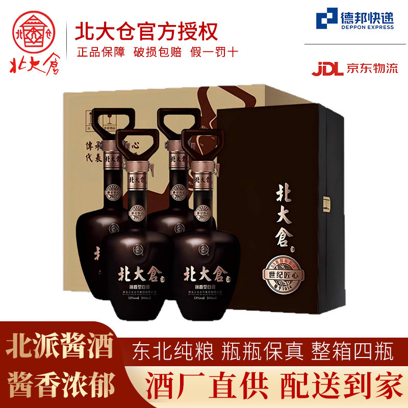 北大仓白酒 世纪匠心53度酱香型酒白酒整箱东北纯粮食酒500ml*4瓶