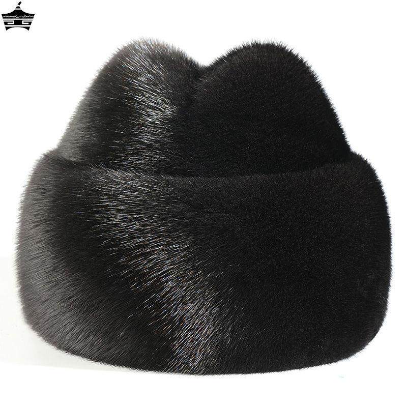 貂皮帽子男冬天中老年人加厚保暖棉帽冬季水貂毛绒整皮草地主礼帽