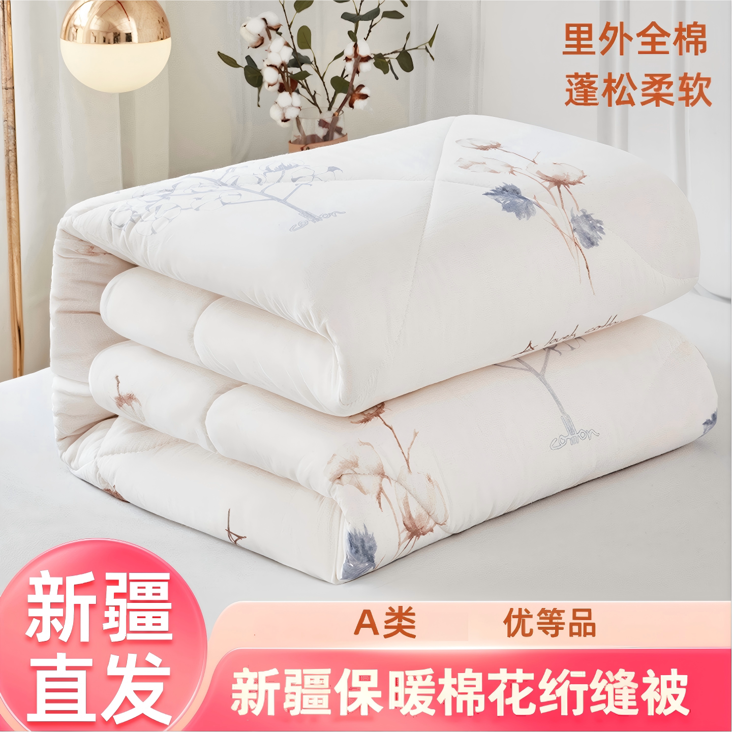 造卧zwow【花朵被】纯全棉A类绗缝蓬松冬季保暖大豆被子纤维被芯