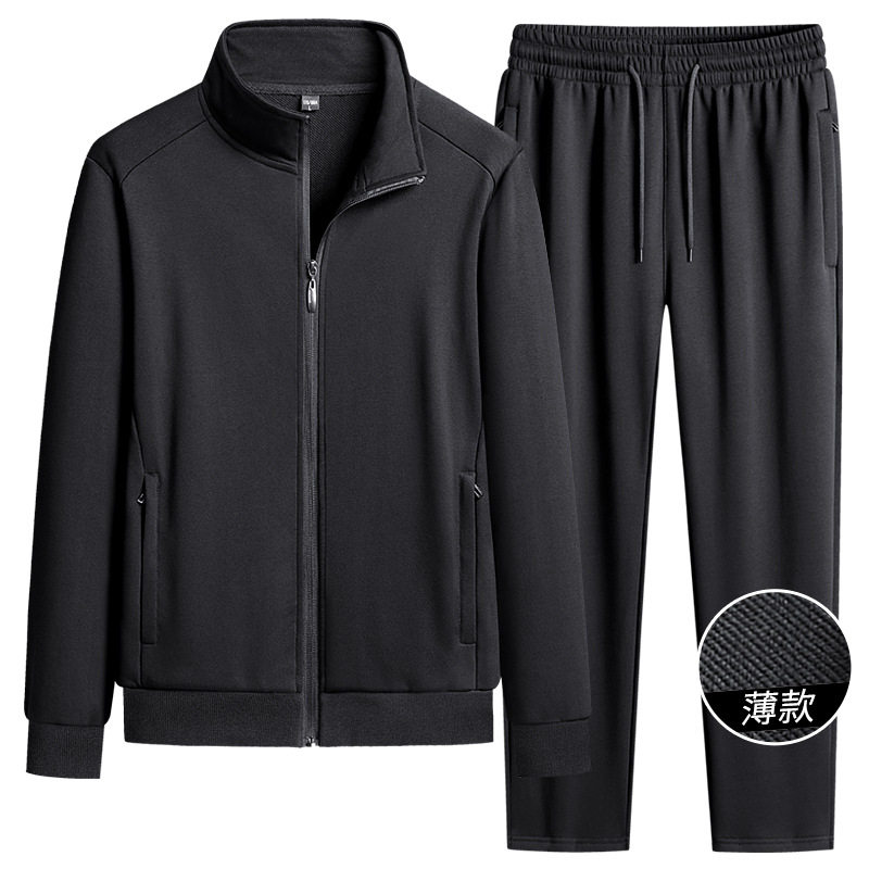 春秋季纯棉立领套装男士运动薄款休闲锻炼运动纯棉春秋男卫衣套装