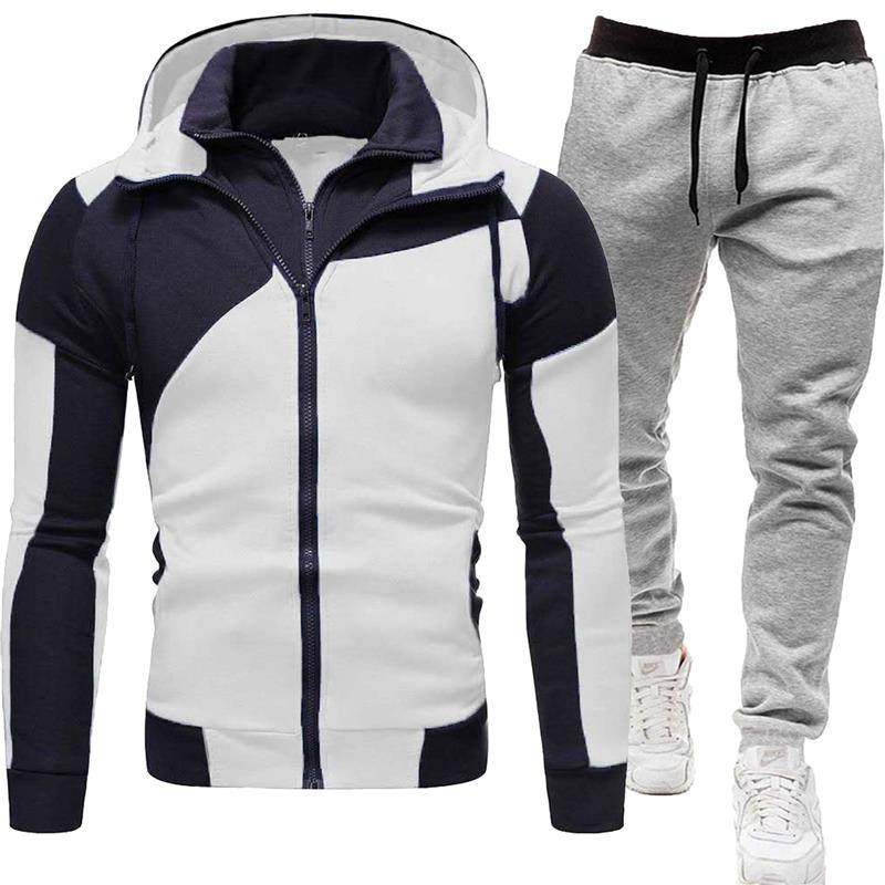 跨境个性拉链衫外贸双拉链男式卫衣拼接修身连帽开衫男卫衣套装男