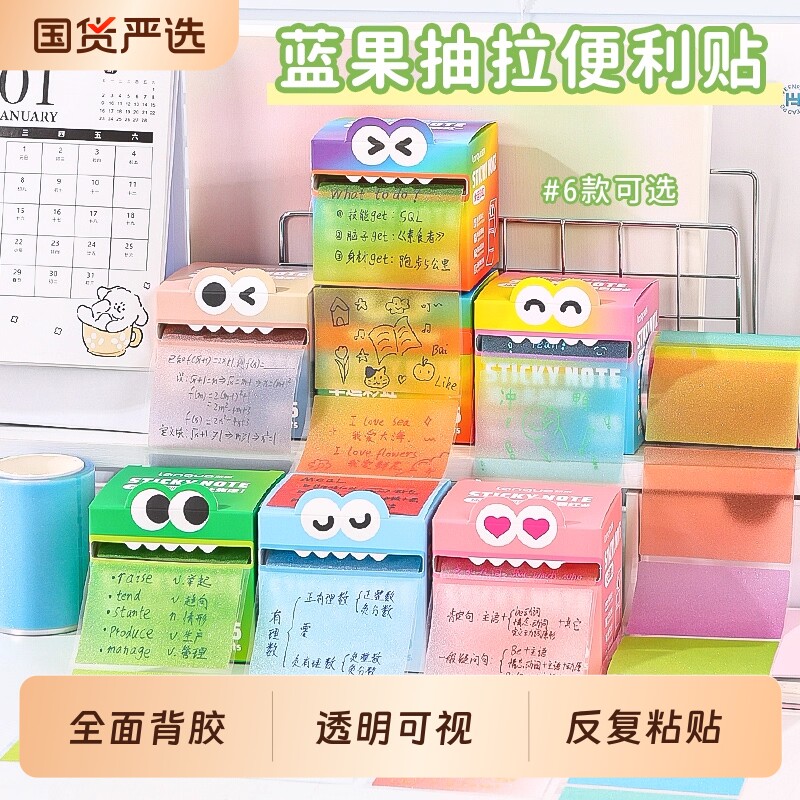 蓝果可抽拉式便利贴高颜值透明珠光爆闪学生用记事贴纸彩色便签本撕除不留痕可粘贴多巴胺可撕标记撕拉彩虹