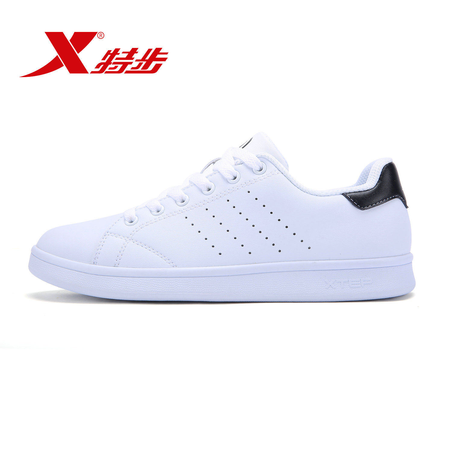 清仓特步板鞋男鞋春秋冬休闲鞋情侣运动鞋皮面女鞋白色百搭小白鞋