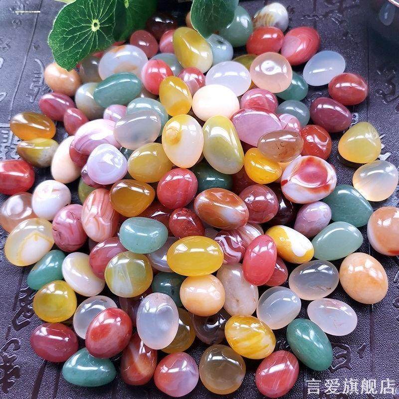 雨花石五彩天然石鹅卵石鱼缸造景彩色小石头花盆铺面装饰水培石子