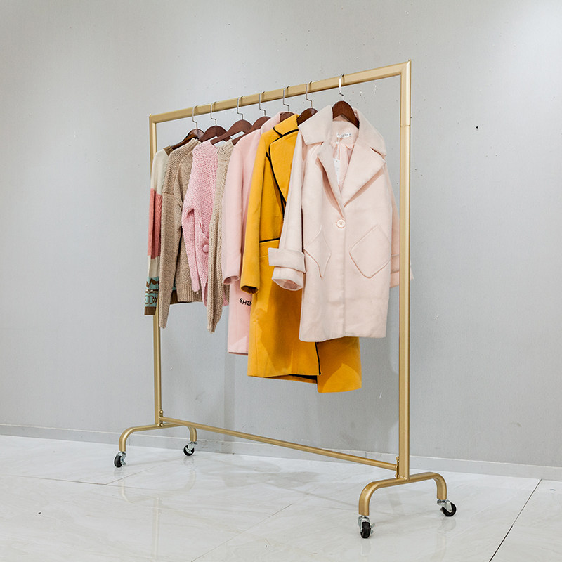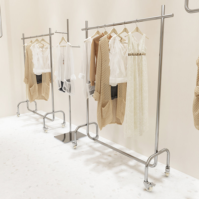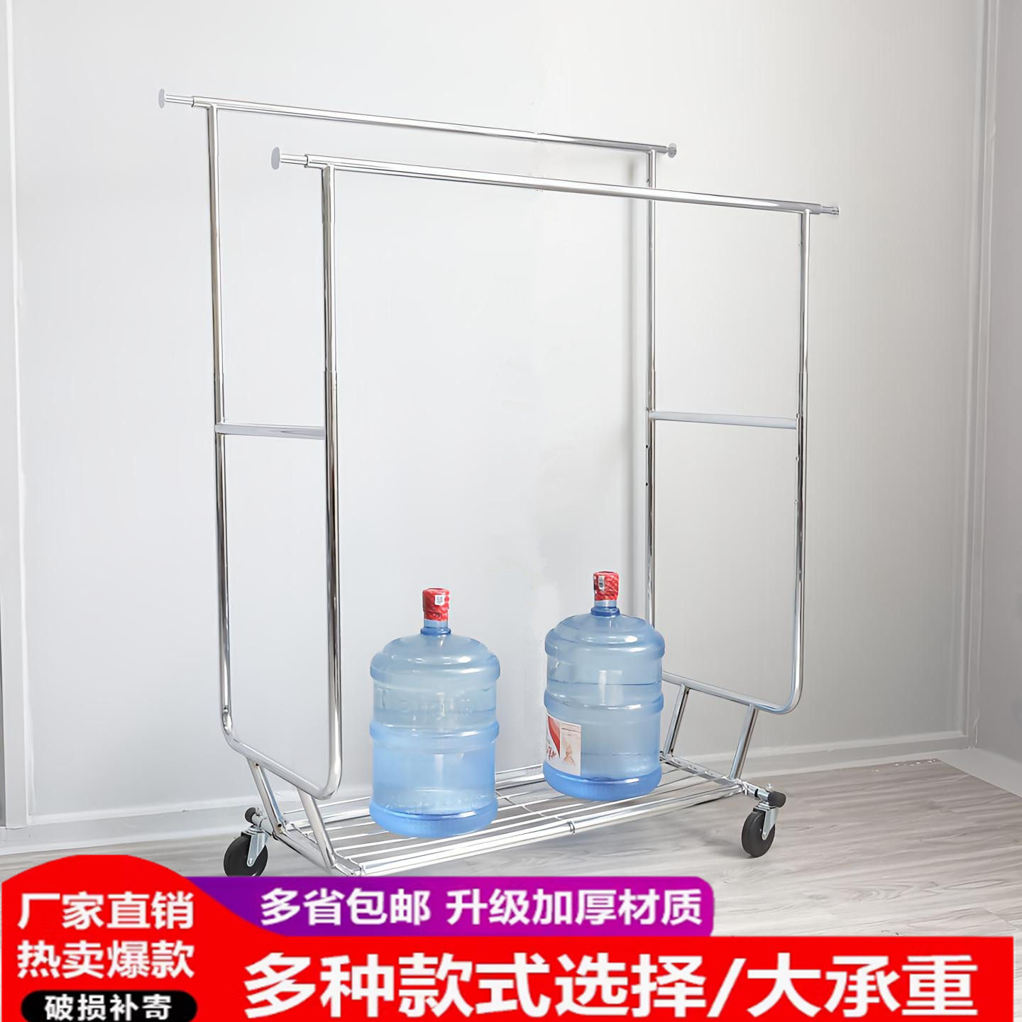 服装店展示架陈列不锈钢落地式衣架女装店专用货架移动挂衣架带轮