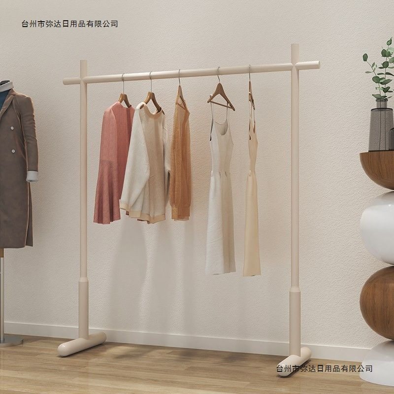 奶油风小空间挂衣杆家用简约衣帽架卧室加粗加厚晾衣架落地式衣架