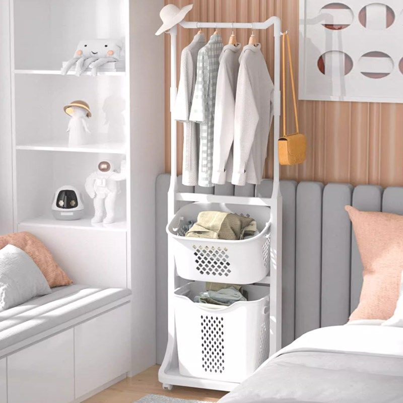 落地式衣架衣帽架脏衣篮宿舍家用可移动多层收纳置物架晾衣架挂架