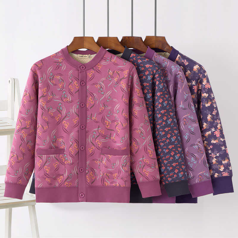 老年人秋冬外套奶奶毛衣妈妈装加绒加厚开衫新中式保暖老太太衣服