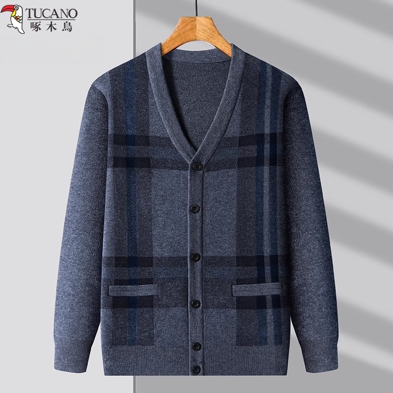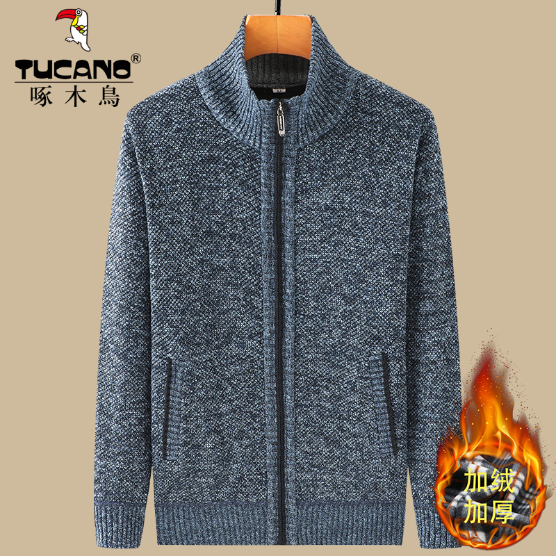 啄木鸟中老年开衫毛衣男秋冬爸爸外套加绒加厚宽松保暖打底针织衫