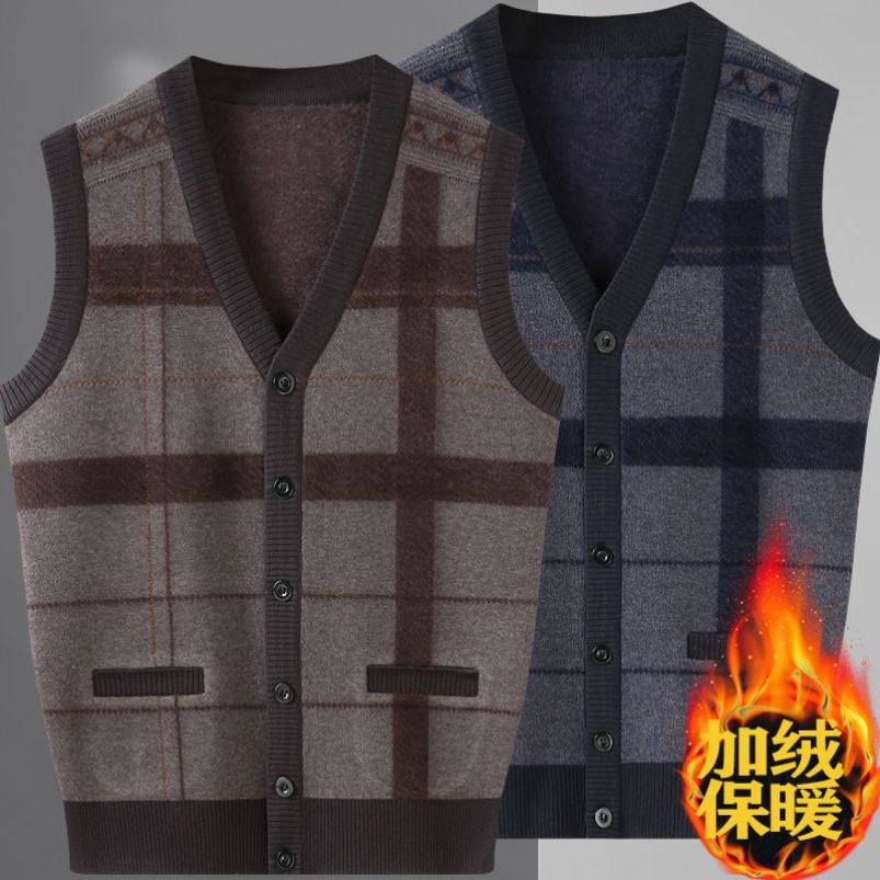 冬季男加绒加厚保暖马甲休闲背心中老年开衫毛衣爸爸大码上衣毛衫
