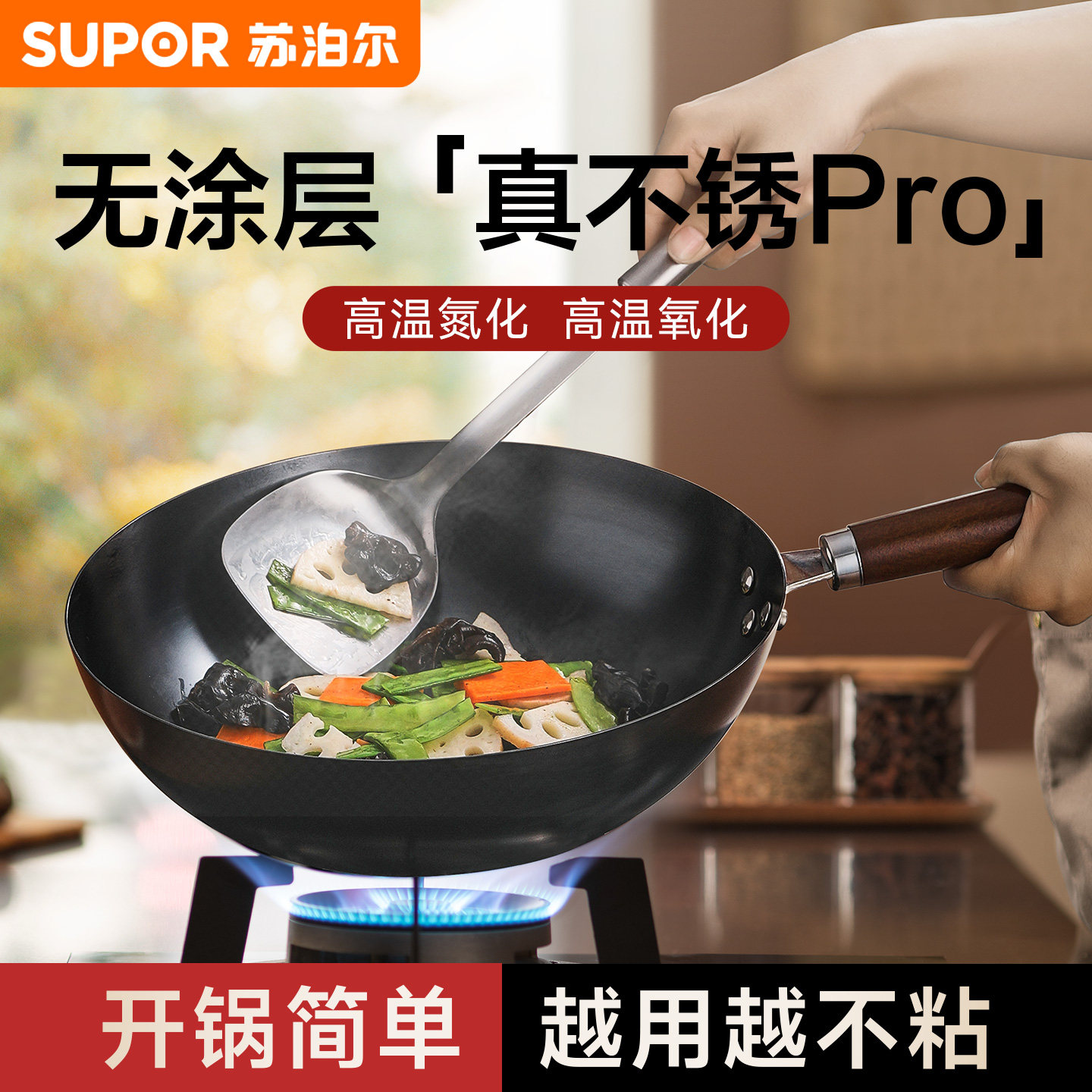 苏泊尔官方旗舰店炒锅铁锅炒菜专用真不锈精铁家用燃气灶专用老式