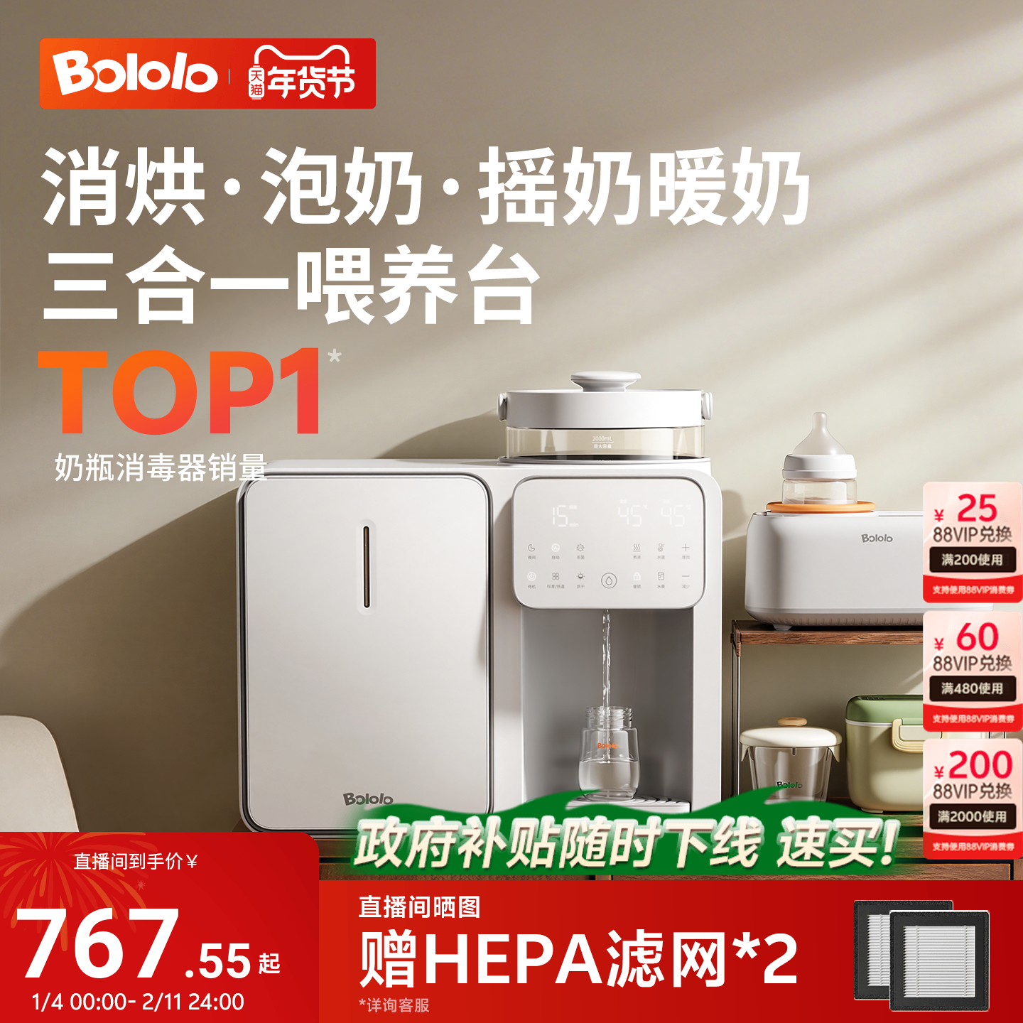 【下拉淘金币】孕贝婴儿奶瓶消毒柜烘干定量调奶摇奶一站式喂养台