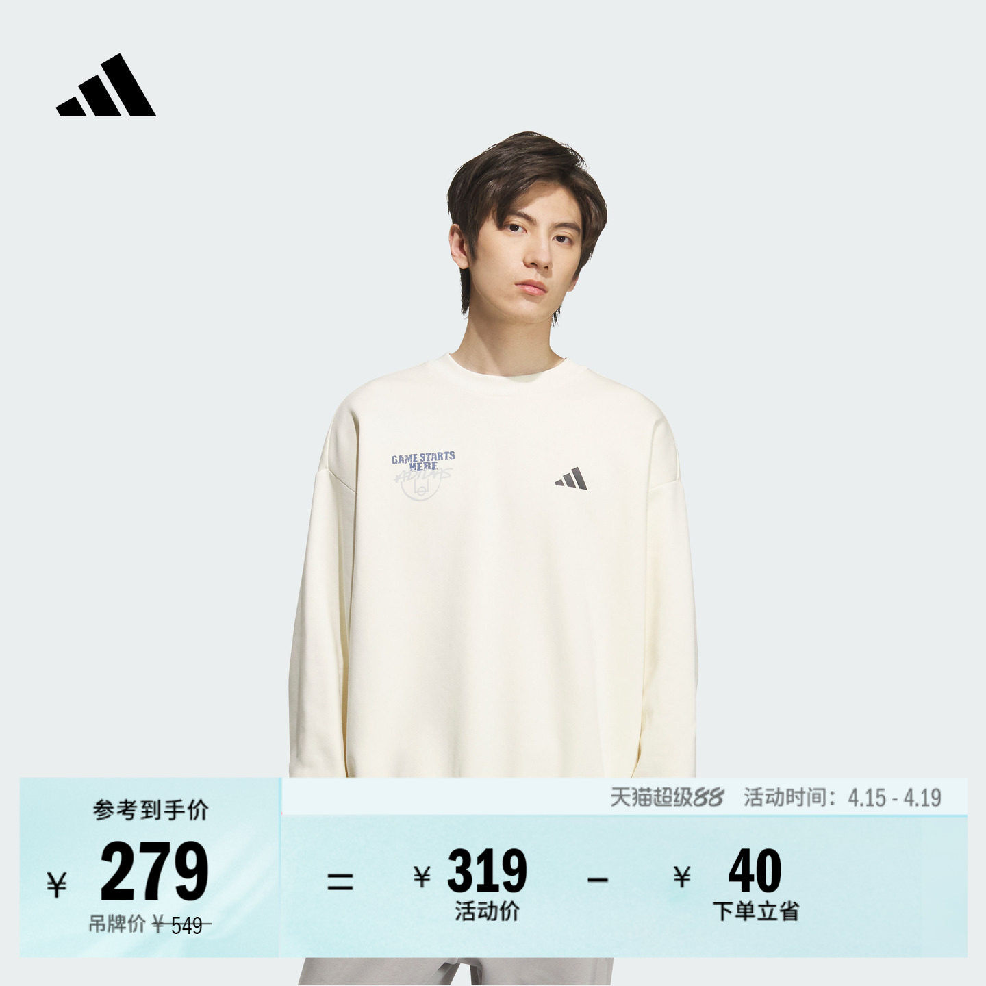 阿迪达斯白色卫衣男春季新款针织保暖打底衫宽松篮球运动圆领上衣