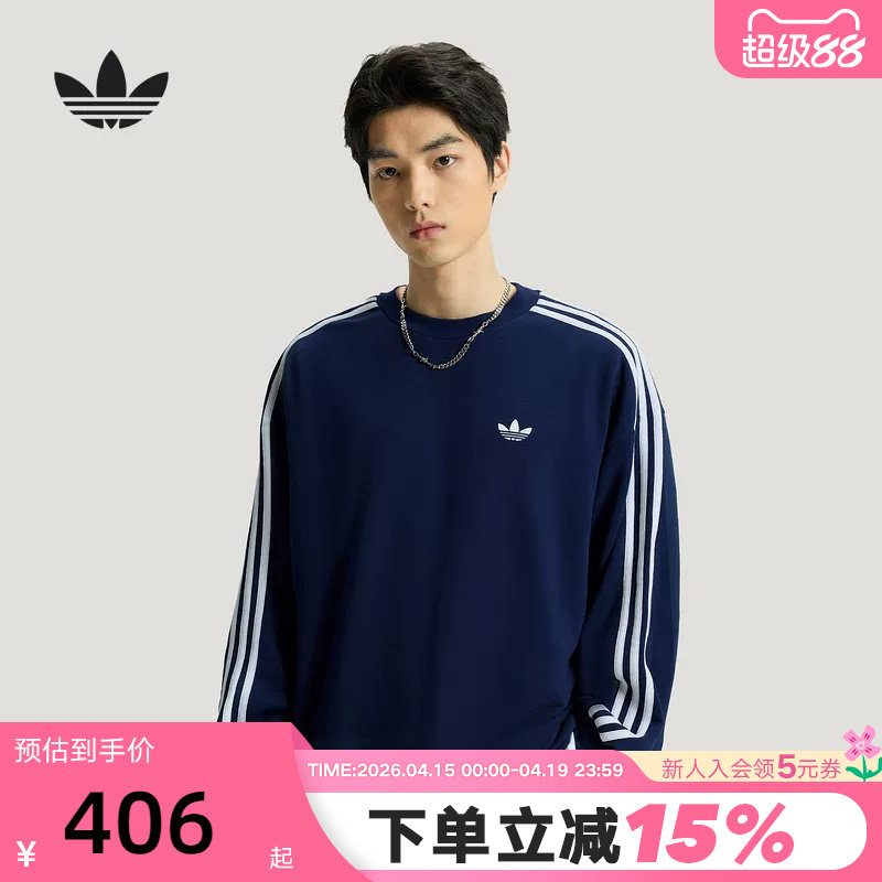 adidas阿迪达斯三叶草三条纹套头衫深蓝色春男篮球圆领卫衣KG3899