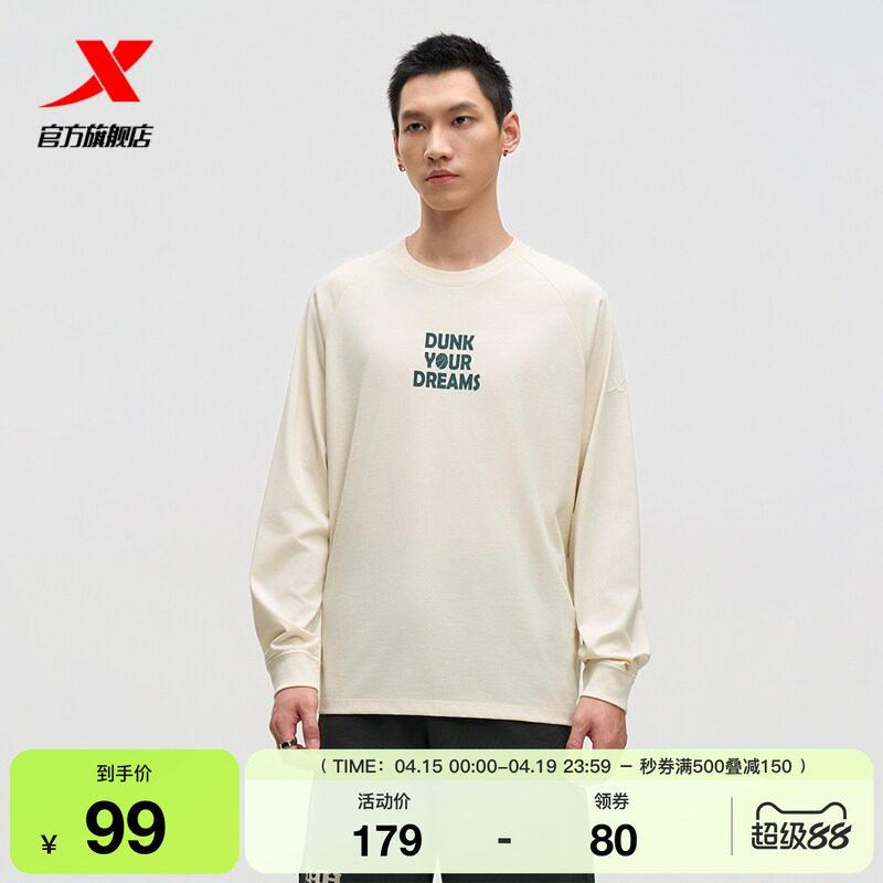 特步篮球长袖T恤男2025年秋季新款宽松男装圆领卫衣975329030240