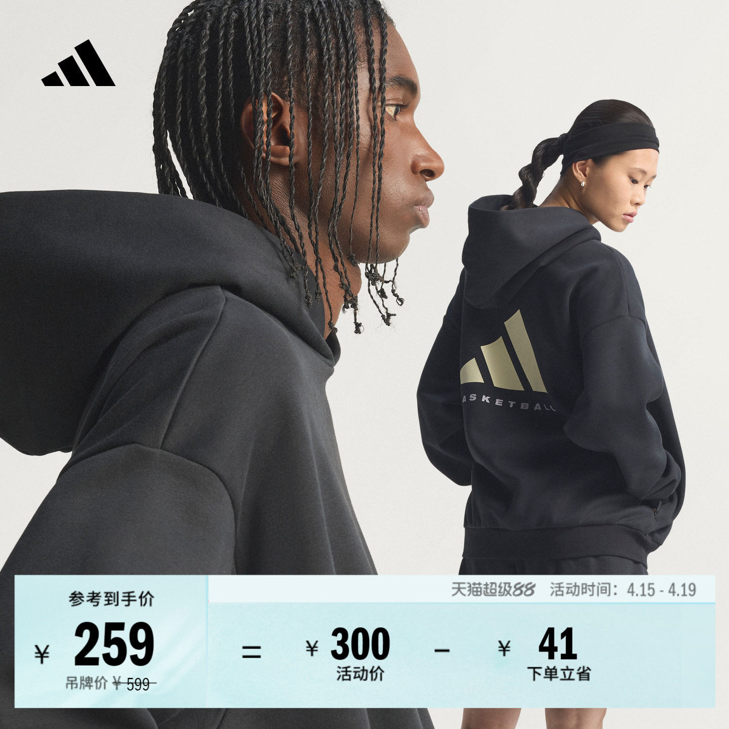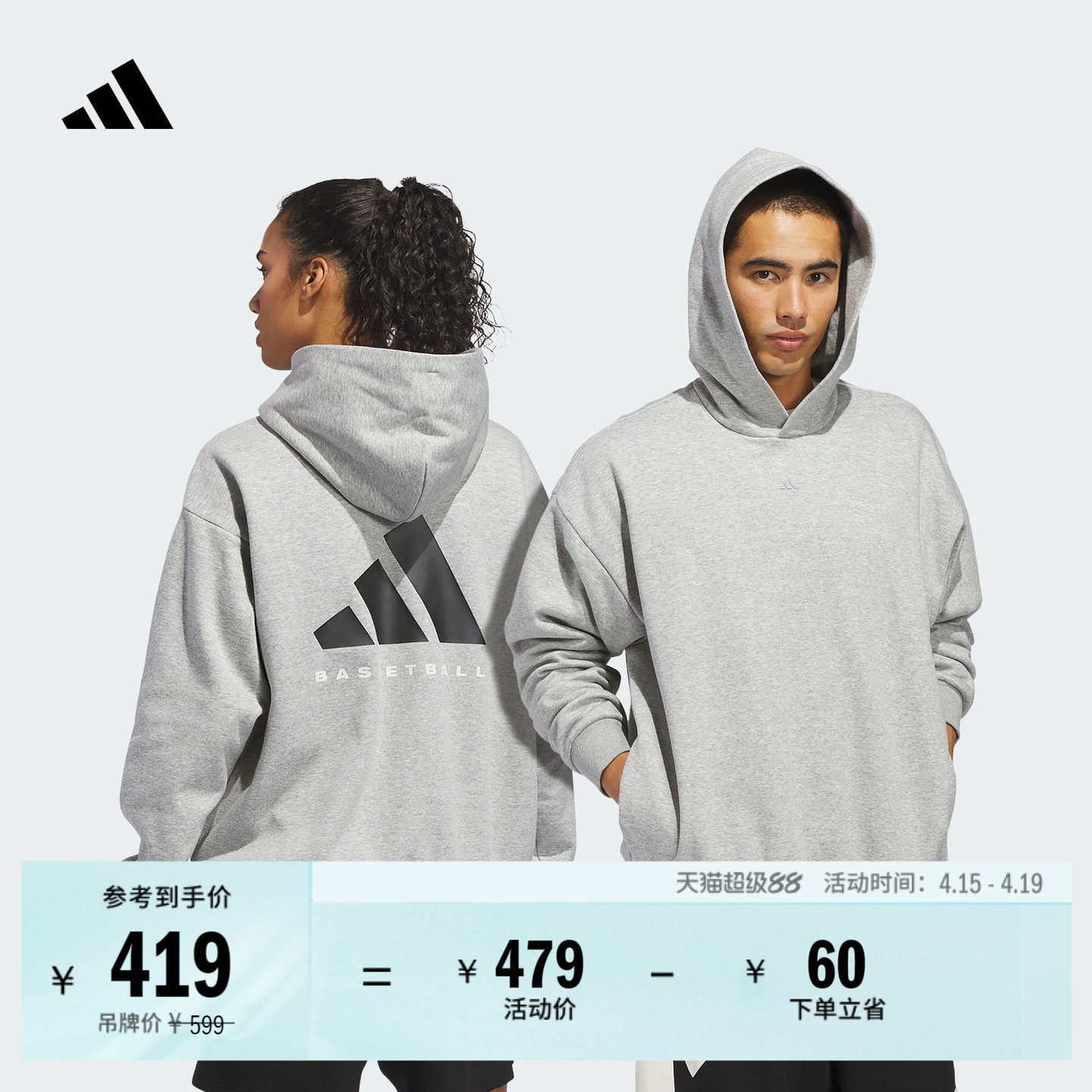 舒适简约篮球运动加绒连帽卫衣男女新款adidas阿迪达斯官方