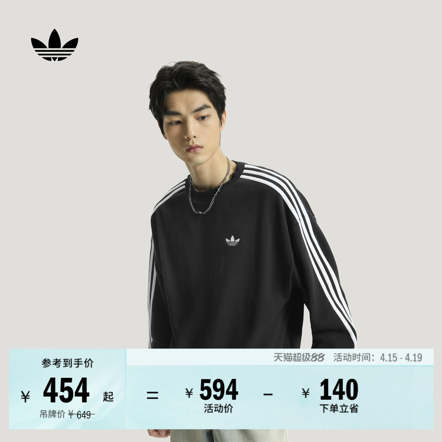 adidas阿迪达斯三叶草基础篮球套头衫三条纹男圆领长袖卫衣KG3900