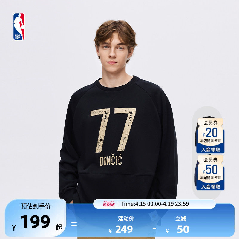 NBA官方库里詹姆斯东契奇春秋纯色打底圆领卫衣宽松长袖套头衫男
