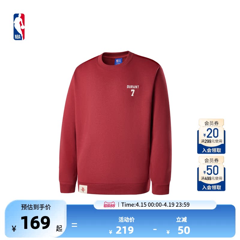 NBA官方库里哈登杜兰特初春男女通勤宽松百搭舒适圆领卫衣上衣T恤