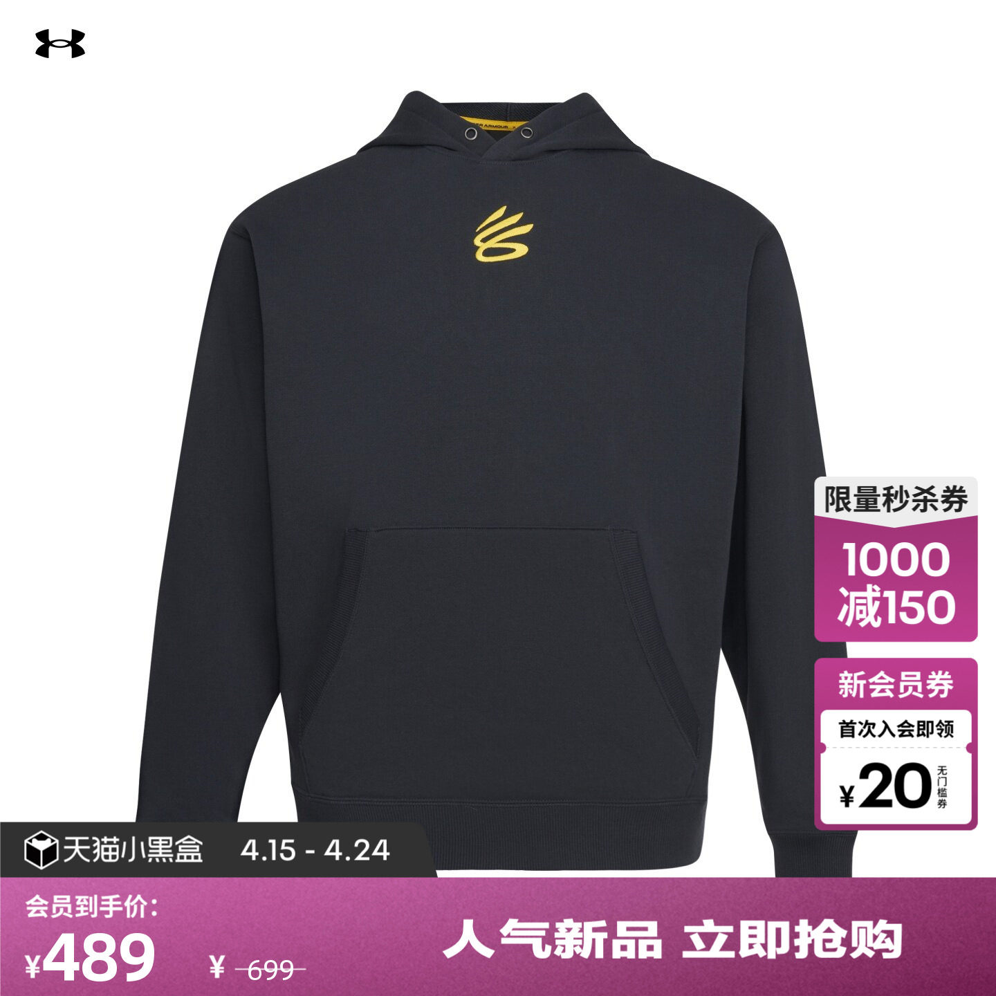 安德玛官方UA春夏库里CURRY男子印花篮球运动连帽卫衣6014297
