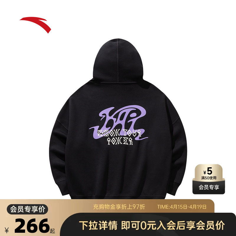 李宁篮球反伍系列场下男子时尚百搭宽松运动套头连帽卫衣AWDU087