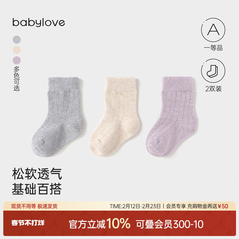 babylove新生儿袜子春秋中筒袜宝宝不勒脚弹力简约百搭护脚袜2双