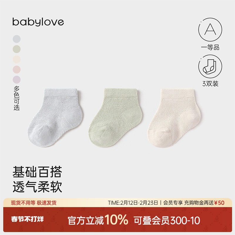 babylove婴儿短袜夏季新生儿袜子男女宝宝弹力网眼透气短筒袜3双