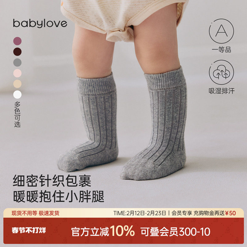 babylove婴儿中筒袜春秋款纯色百搭防掉跟新生儿袜子弹力宝宝袜