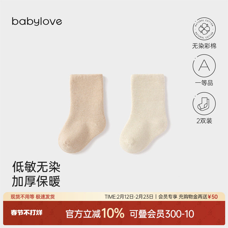 babylove婴儿袜秋冬保暖加厚男女宝宝中筒袜新生儿袜子百搭2双装