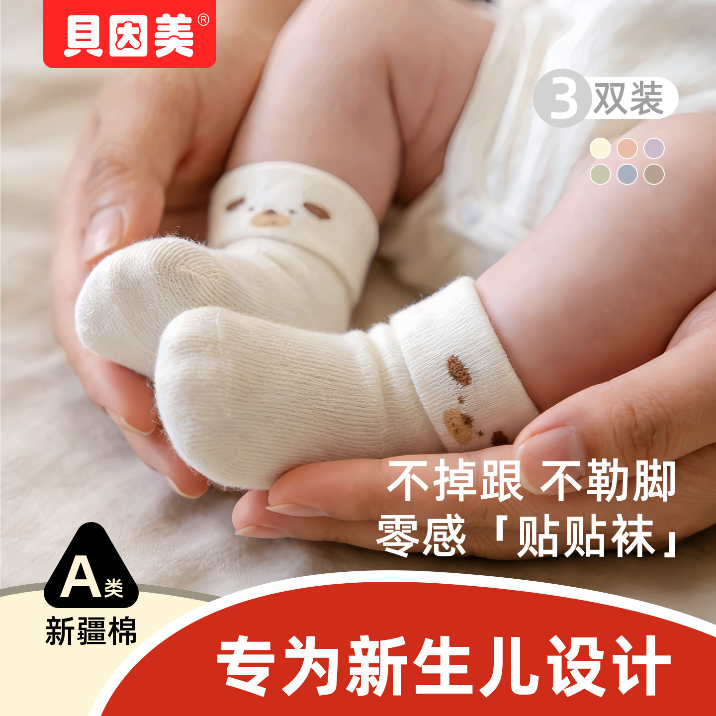 贝因美新生儿袜子春夏季宝宝中筒袜初生儿胎袜婴幼儿袜子0-3个月