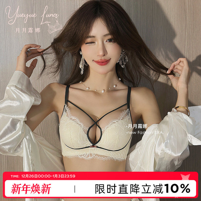 月月露娜 小胸聚拢内衣女加厚性感蕾丝文胸防下垂无钢圈胸罩套装