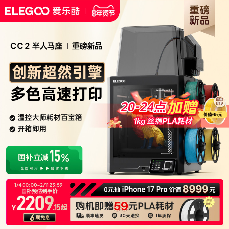 ELEGOO/爱乐酷CC2多色3d打印机家用开箱即用全自动调平高速打印家用立体桌面级高精度3d立体打印机机器