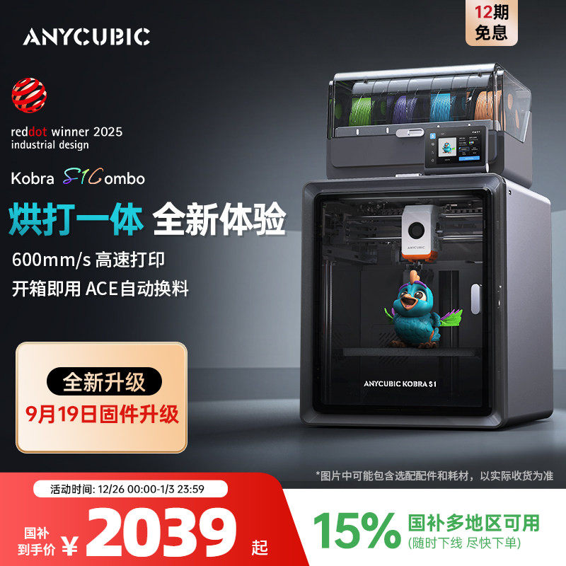【国家补贴15%】纵维立方Kobra多色3D立体打印机S1C大尺寸全自动调平FDM高速桌面级三d打印机家用儿童模型diy