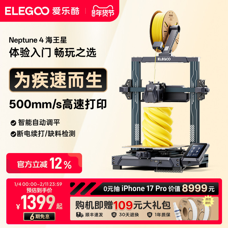 ELEGOO/爱乐酷 Neptune 4 Plus海王星3d打印机FDM桌面级高速家用高精度工业儿童玩具定制模型diy套件大尺寸