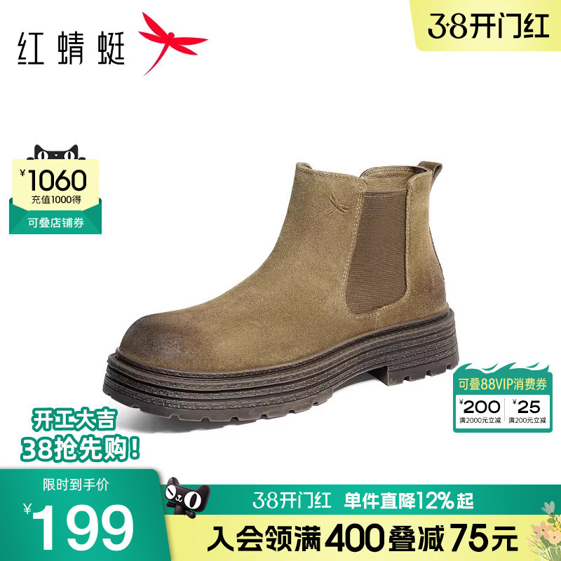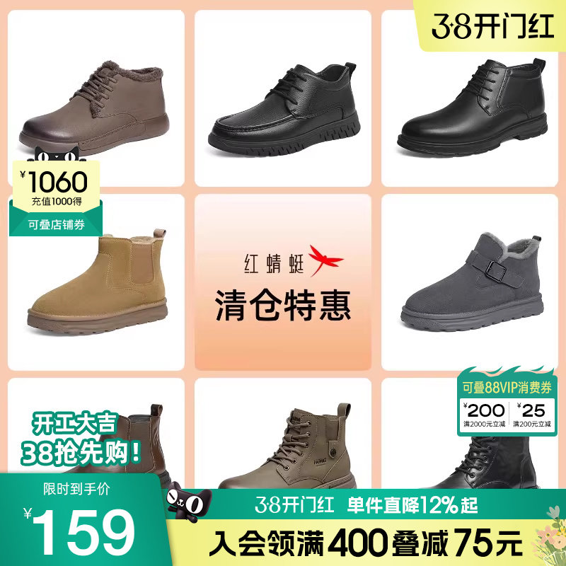 红蜻蜓马丁靴男士秋冬季新款男鞋加绒厚底皮鞋短靴子英伦风机车靴
