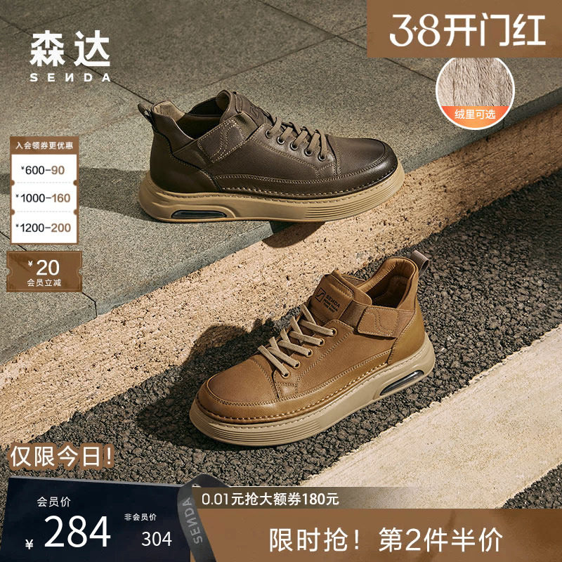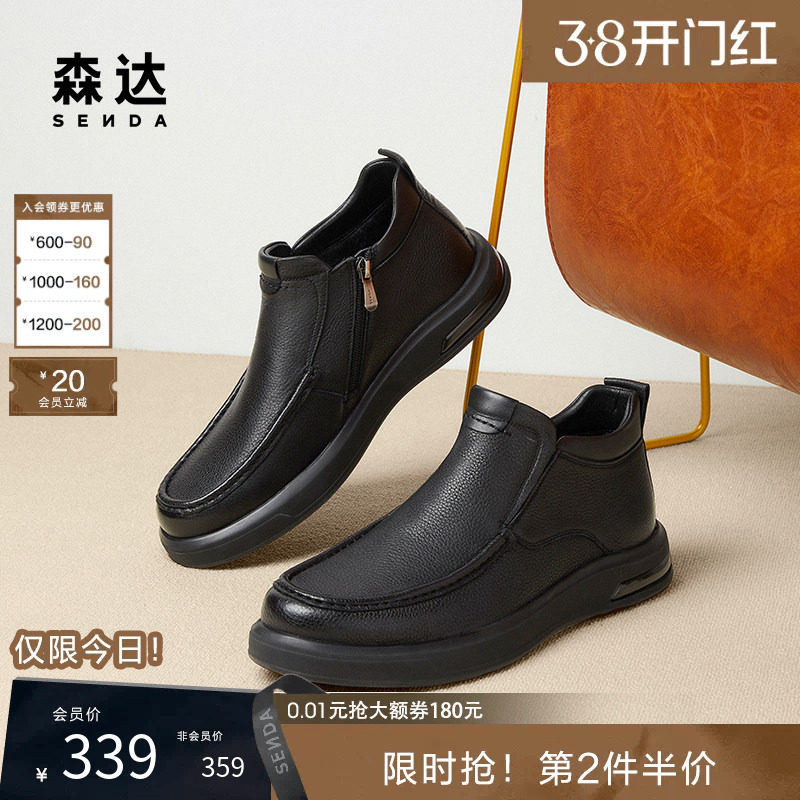 森达男鞋工装短靴秋冬商场款休闲复古潮流靴加绒保暖低帮鞋V3045D