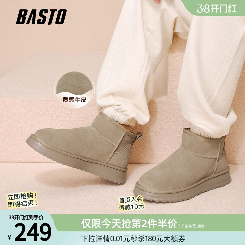 百思图秋冬季商场新款加绒真皮马丁靴时尚户外保暖男短靴W9860DD5