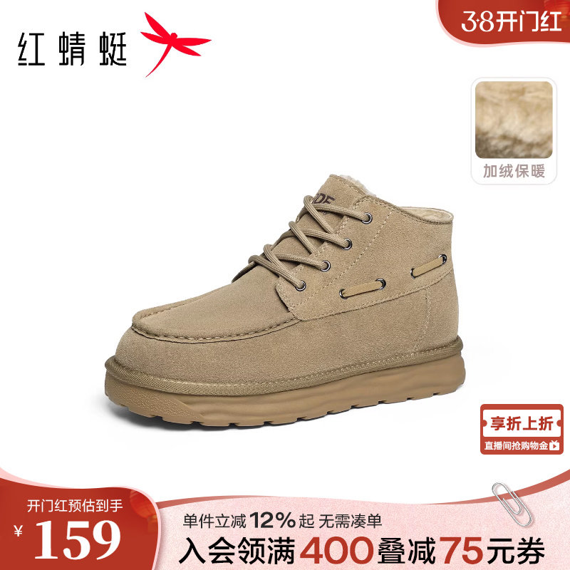 红蜻蜓雪地靴男秋冬新款男鞋厚底高帮加绒保暖爸爸棉鞋户外短靴子