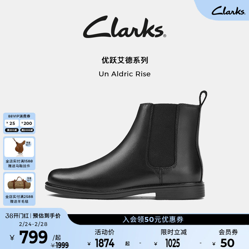 Clarks其乐Un Aldric Rise男鞋秋冬英伦百搭牛皮短靴切尔西靴男