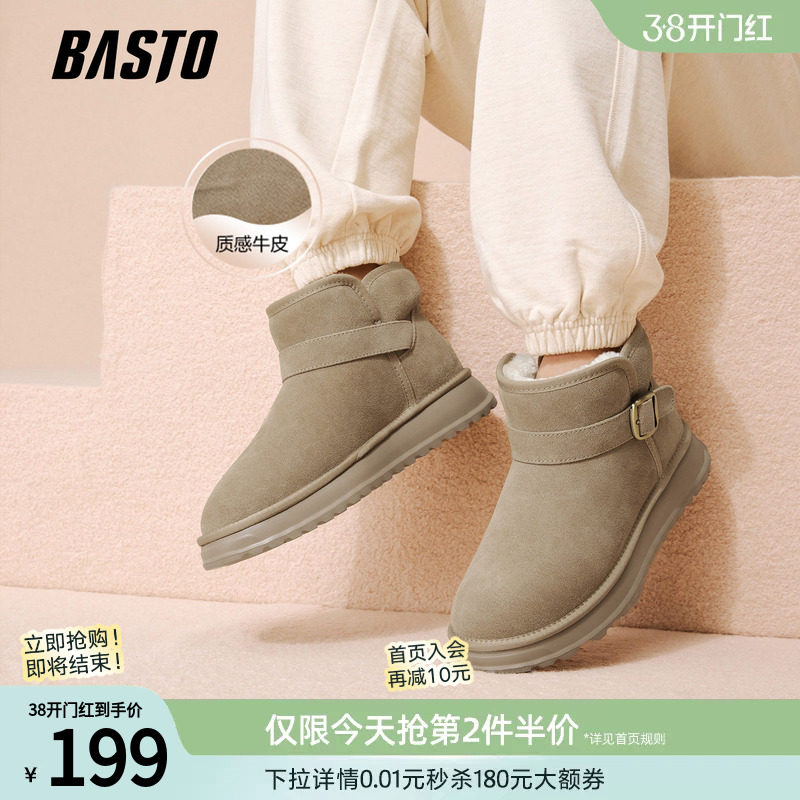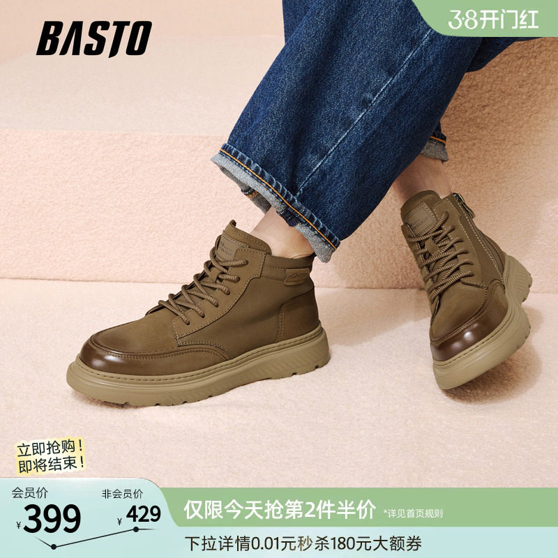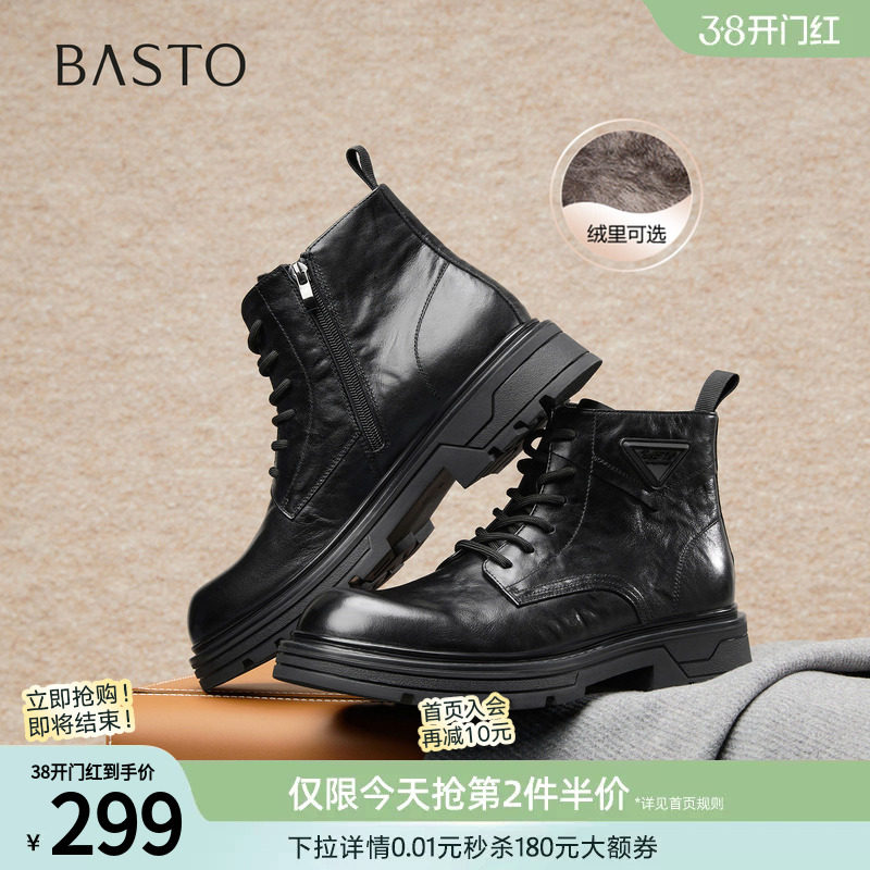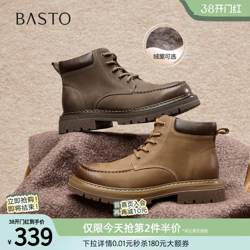 百思图秋冬季商场新款东北加绒棉鞋厚底户外工装马丁靴时尚男短靴
