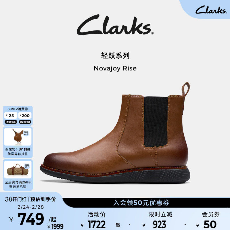 Clarks其乐Novajoy Rise男鞋秋冬牛皮革轻盈缓震英伦切尔西短靴男
