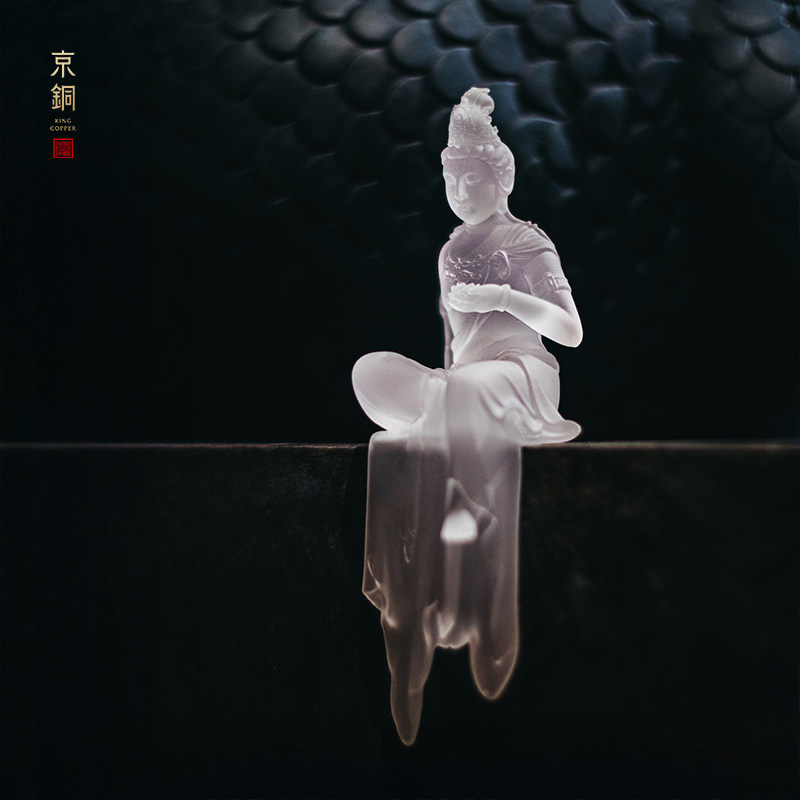京铜水月观音像观自在观世音琉璃菩萨佛像摆件坐佛新中式禅意小号