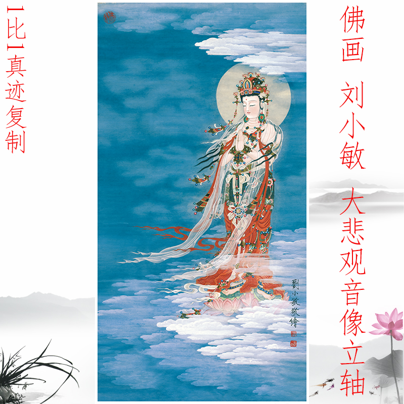 刘小敏 大悲观音像 复古书画人物佛像国画真迹微喷仿古挂轴装饰画