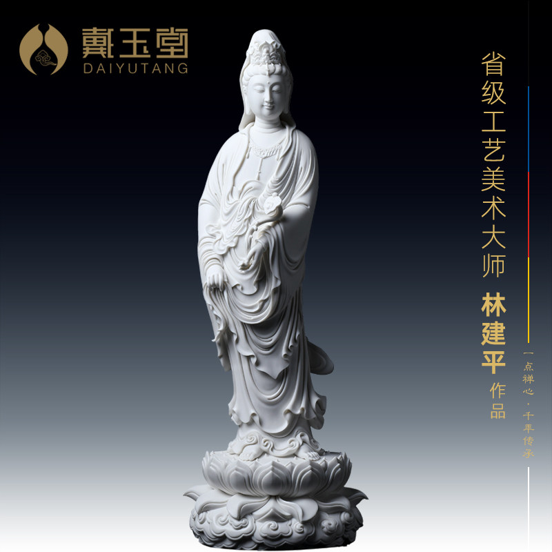 戴玉堂立莲南海观音像佛像家用陶瓷普陀山观世音菩萨站像站立神像